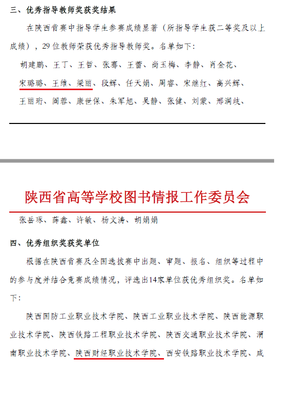本次大赛分设学生组和教师组,系我院首次参加。学生组初赛共计4226名,其中26名学生进入陕西总决赛阶段。来自大数据与人工智能学院付佳丽、贾静2名同学凭借扎实的理论知识、过硬的训练功底以及良好的心理素质,一路过关斩将,闯进决赛,尽显陕财学子的自信与风采。经过激烈角逐,付佳丽、贾静分别荣获陕西省总决赛学生组一等奖、二等奖,宋璐璐、王维、梁丽获“优秀指导教师奖”,我院因组织得力、参赛积极、成绩优异,荣获“优秀组织奖”。