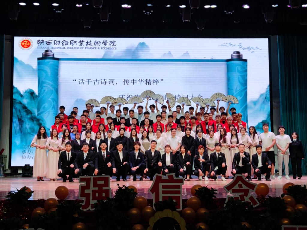 为丰富校园文化生活,增强校园文化氛围,弘扬中华优秀传统文化,增进师生爱国主义情怀,让学生能够在古韵芳华中传承文明、提高修养,收获快乐、感悟成长。为此5月20日由陕西财经职业技术学院团委主办,大数据与人工智能学院团支部承办,各二级学院团总支协助举办的诗词大会在学院大礼堂拉开帷幕。莅临本次诗词大会的嘉宾有团委书记窦曼娟老师,团委正科级干部连静老师。用友.新道会计学院团总支书记张璐老师。大数据与人工智能学院团总支书记谢卫朋老师。商学院团总支书记刘明老师。经济与金融学院团总支副书记张欣瑞老师。团委兼职副书记吕斌老师以及校师生代表1300余人。