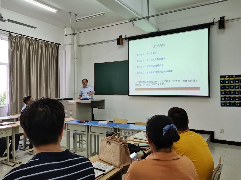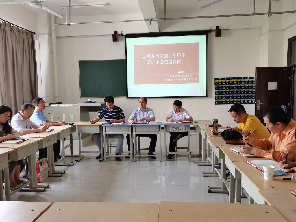 为了贯彻习近平总书记在党史学习教育动员大会重要讲话精神,做到“学史明理、学史增信、学史崇德、学史力行”,大数据与人工智能学院党总支书记曹耀辉于2021年5月26日下午在综合楼514教室为教工党员开展“学思践悟党的百年历史,坚定中国道路自信”专题党课。