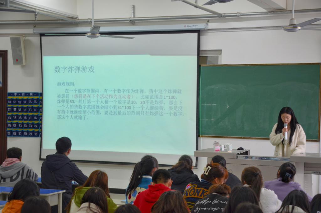 活动的最后组织进行了数字炸弹游戏,说中数字炸弹的同学都做了精彩的自我介绍。经过这个游戏,同学们之间有了进一步的了解,深厚了彼此之间的友谊。