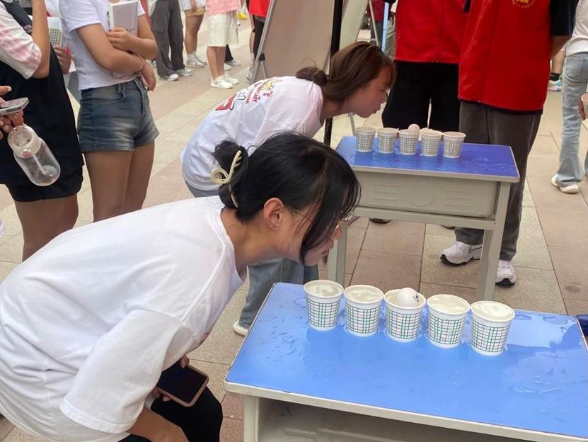 在“近水楼台先得月”环节中,同学们全神贯注地瞄准壶口,将箭一支支投出,瞄准远处的目标进行投掷。每一次投中都伴随着阵阵欢呼与喝彩,那紧张而又兴奋的氛围弥漫在空中,让人充分感受到了古代竞技的魅力与乐趣;在“海底捞月环节”中同学们手持长筷,仿佛化身为古代智者,开始了一场充满智慧与欢笑的“捞月”竞赛。