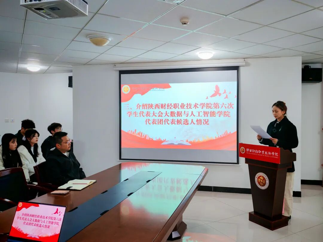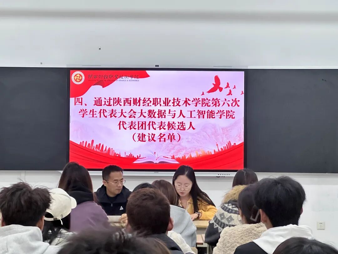 会议严格遵循民主集中制原则,各项议程有序推进。首先,王立户、马朝分别在两校区会场宣读《大数据与人工智能学院第六次学生代表大会代团团代表选举办法(草案)》,就选举原则、候选人产生流程、投票规则等核心内容作出清晰说明,该办法经大会全体代表审议并一致通过。随后,王苗苗、尹才元逐一介绍了参会代表候选人的基本情况,让代表们全面了解候选人信息,为民主投票筑牢基础。同时,大会审议并表决通过《陕西财经职业技术学院第八次学生代表大会大数据与人工智能学院代表团代表候选人(建议名单)》,为校级学代会的顺利召开做好组织筹备。
