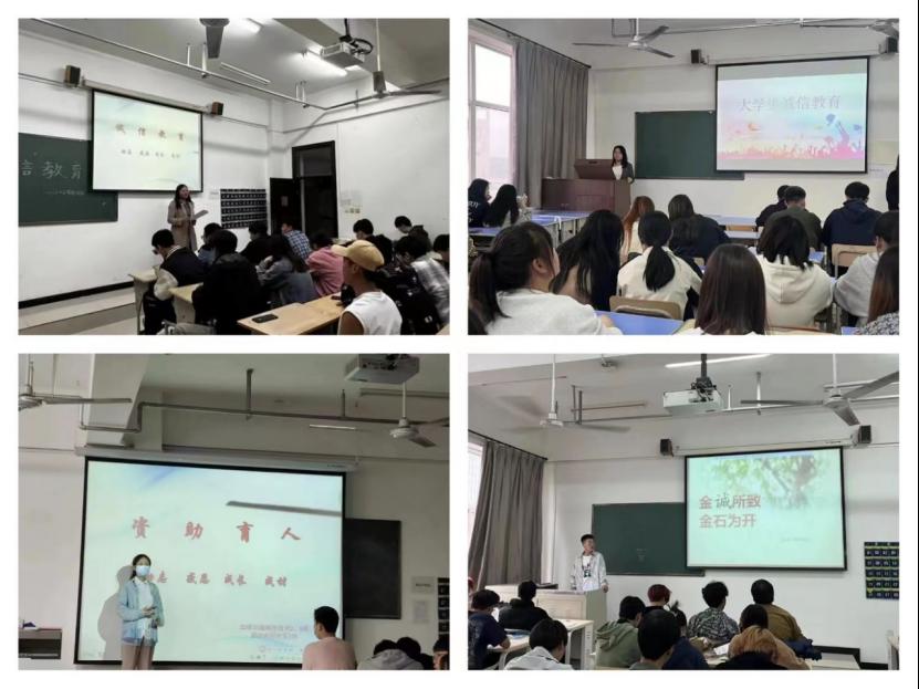为培育和践行社会主义核心价值观,大力弘扬诚信文化,切实提高学生的诚信品质、自律意识和社会责任感,大数据与人工智能学院于2023年5月21日晚自习开展了“诚信教育”主题班会。