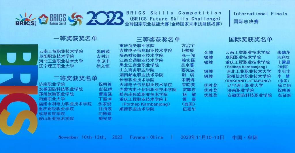 11月11日,由南非高等教育与培训部、金砖国家工商理事会、南非豪登省政府主办,教育部中外人文交流中心组织的2023年金砖国家职业技能大赛商务软件解决方案国内决赛在安徽阜阳职业技术学院成功举办。我校大数据与人工智能学院的魏超老师指导张一闯同学荣获三等奖的优异成绩。