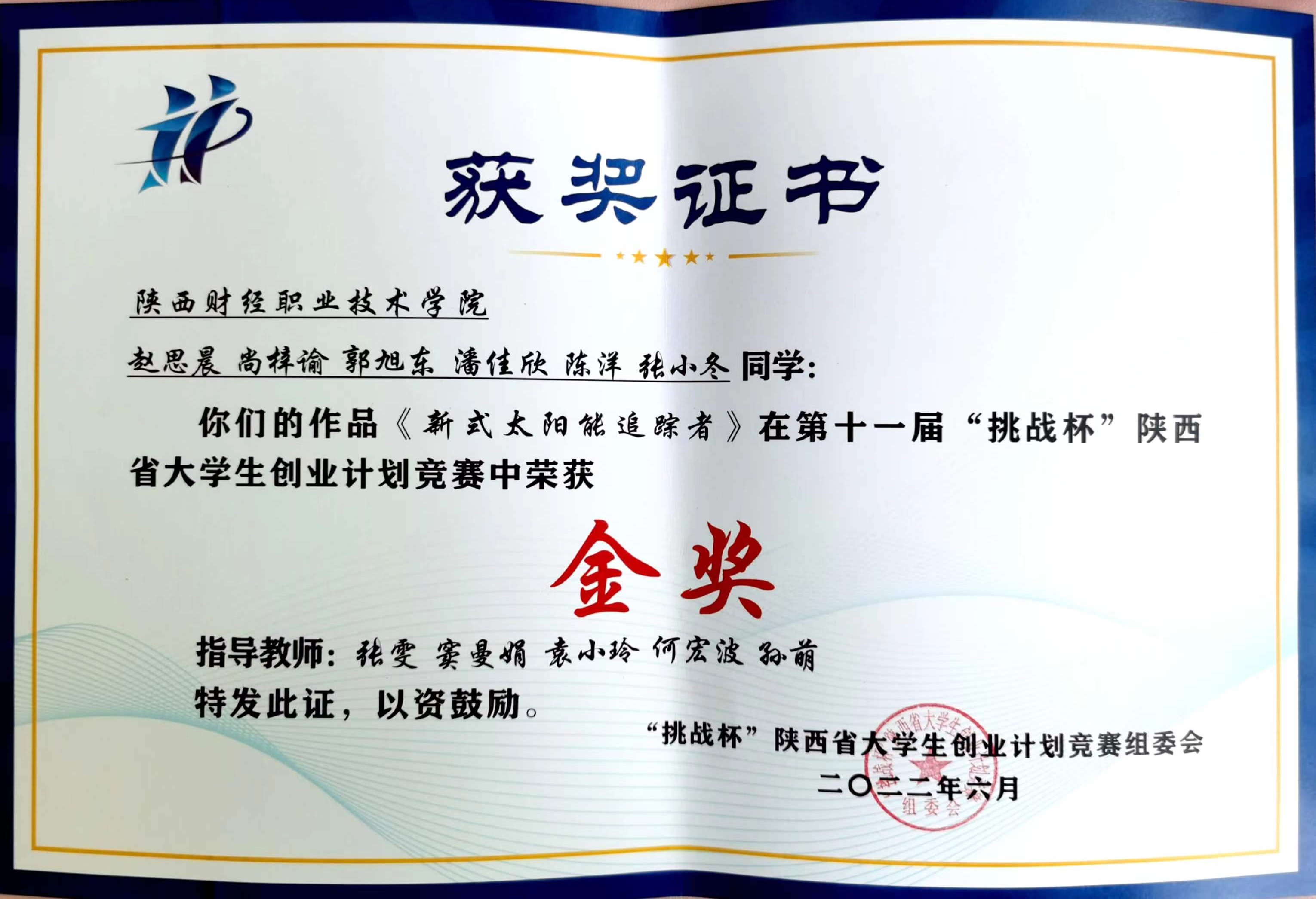 上一条:2022年”建行杯“第八届中国国际”互联网+“大学生创新创业大赛陕西赛区省级金奖