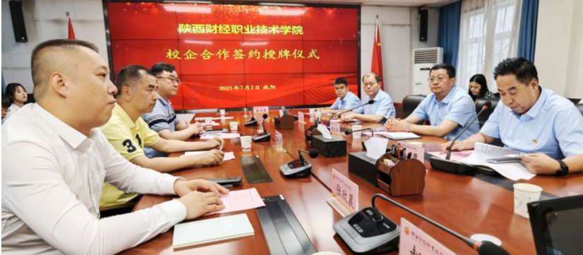 7月2日下午,我院与江苏正力新能等6家企业在办公楼4楼会议室举行校企合作签约授牌仪式。书记张志华、副院长王勇、江苏正力新能总经理杜天柱、苏州富强科技常务副总王鑫、中译语通总经理张欣晨、陕西易眼看荐总经理杨倩、北京云腾智达人力资源部总监赵红芳、博彦科技人力资源部总监吴飒、西咸新区人才市场负责人王剑、新科教育科技总经理靳义矿,出席签约授牌仪式,大数据与人工智能学院负责人王双明教授、党总支书记曹耀辉、副院长张沛强、王刚及大数据与人工智能学院教师和企业代表、《华商网》教育频道记者杨帆全程拍摄了本次签约授牌仪式。