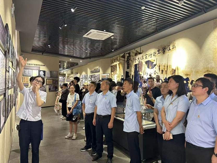 在讲解员的带领下,大家有序参观了院落旧址和纪念馆的各个展厅,观看了文献资料、历史图片、革命影像等史料,并且在党旗的见证下,党员同志们重温入党誓词,表达对党的无限忠诚与为党和人民事业不懈奋斗的坚定信念。那一刻大家仿佛能听到当年革命先烈们低声商讨革命的回声,感受到他们为了民族独立和人民解放而英勇斗争的坚定信念。在参观过程中,我们被一件件珍贵的文物、一幅幅生动的历史照片深深吸引。它们无声地诉说着那段艰苦卓绝的岁月,让我们深刻感受到了革命前辈们坚定的信仰和不屈不挠的斗争精神。
