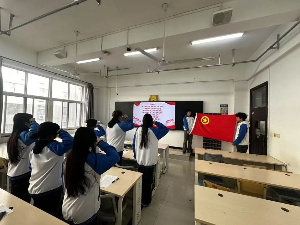 会议第五项,全体团员起立,面向团旗,举起右手,庄严宣誓。在铿锵有力、昂扬奋发的宣誓声中,砥砺初心使命、强化责任担当,共同凝聚起助力本团支部高质量发展的青春力量。