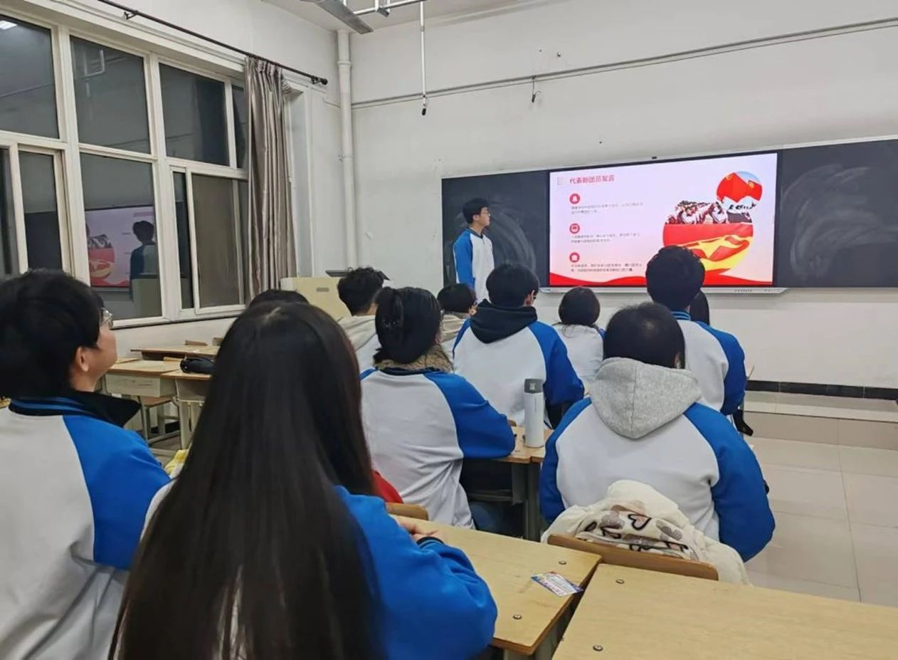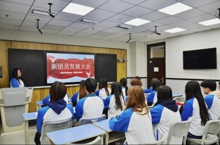 仪式伊始,全体起立,奏唱国歌。其次,团支书宣读了新团员名单以及本次发展新团员的相关情况,并向各位新团员致以衷心的祝贺。随后,各班宣传委员带领全体新团员面向团旗,紧握右拳,庄严宣誓,字字铿锵,掷地有声。他们用洪亮而坚定的声音表达了对中国共产主义青年团的无限向往,展示了新团员们对共青团组织的无限忠诚和为共产主义事业奋斗的决心。