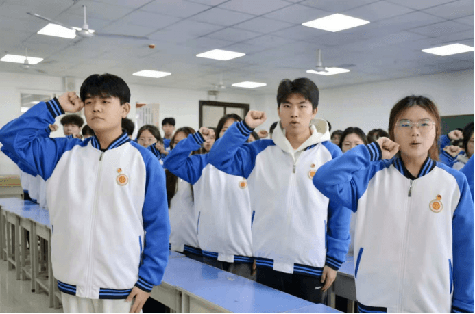仪式第四项:新团员宣誓,由国旗护卫队展团旗,石佳豪杰同学带领新团员宣誓。希望新团员们能将宣誓词牢记于心,实践于行,用行动彰显团员力量,发扬团员先锋精神。