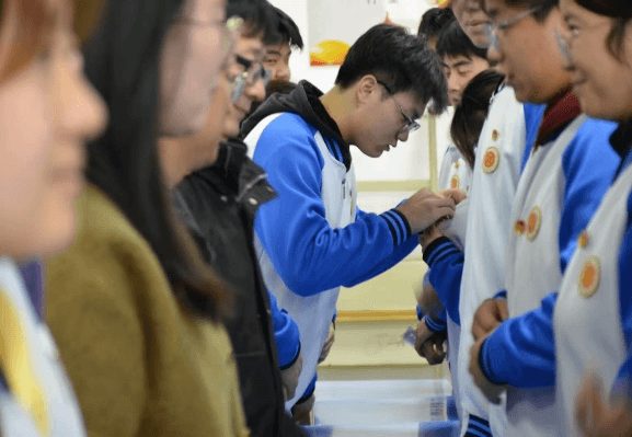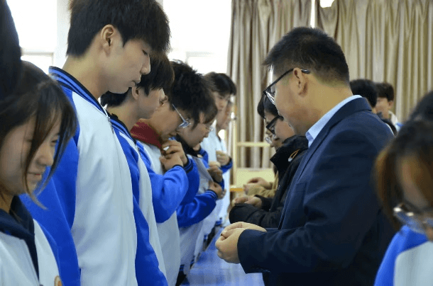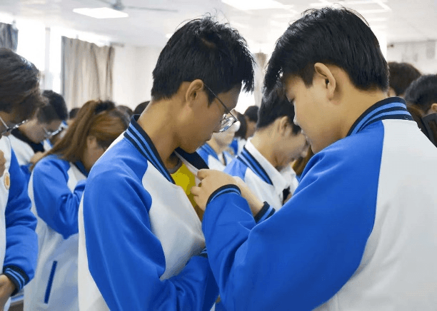 仪式第三项: 接下来由我院老师和团组织代表为新发展团员佩戴团徽,一枚枚闪耀的团徽被郑重的佩戴在新团员的胸前,新团员们的脸上洋溢着激动与自豪的笑容,象征着共青团的使命与责任从此传递到他们手中。