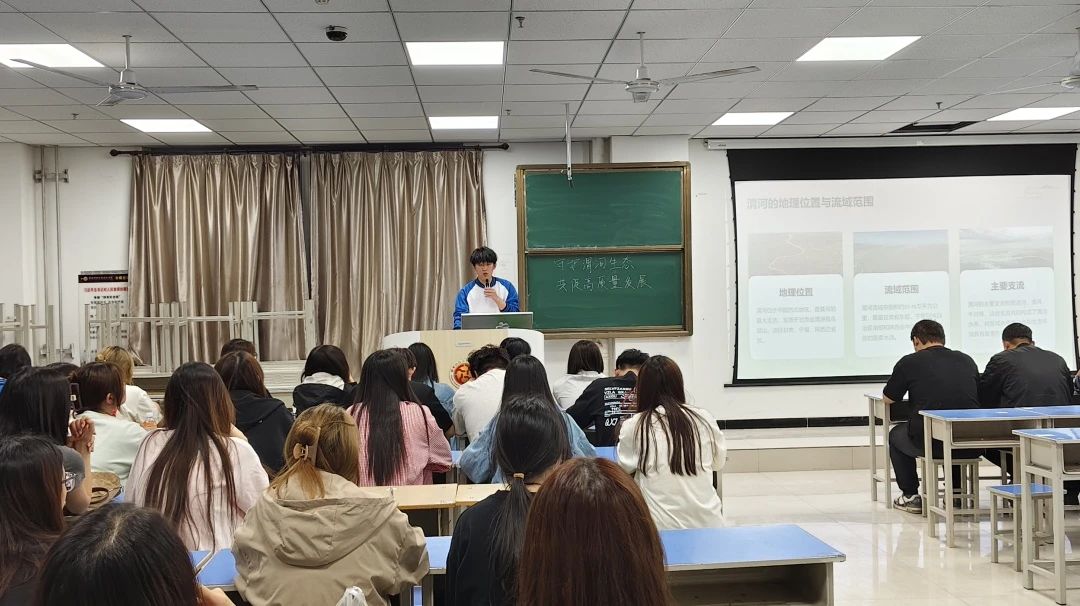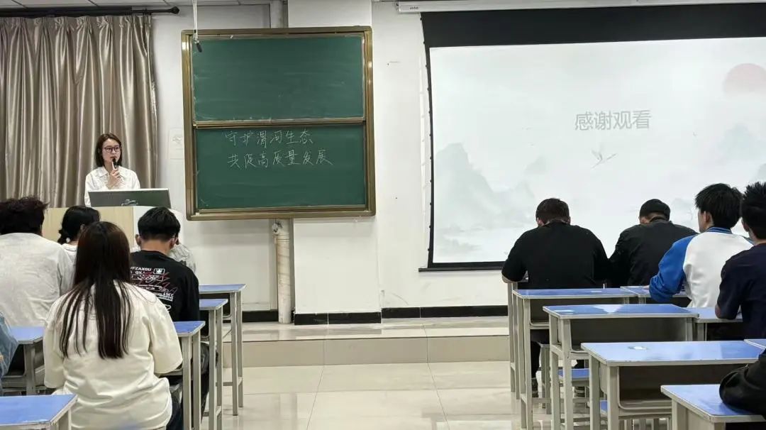 活动伊始,团支书刘文凯、马康宁两位同学介绍本次活动流程,并讲述渭河的地理概况、历史文化层面的深远意义,让同学们对渭河有了全面深刻的认识。紧接着,深入剖析了当前渭河流域面临的一系列严峻生态问题。同时,详细解读了《陕西省渭河保护条例》,让同学们知悉政策要点,用实际行动守护渭河生态,践行新时代青年的环保担当。
