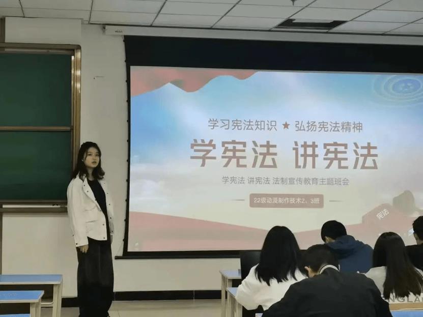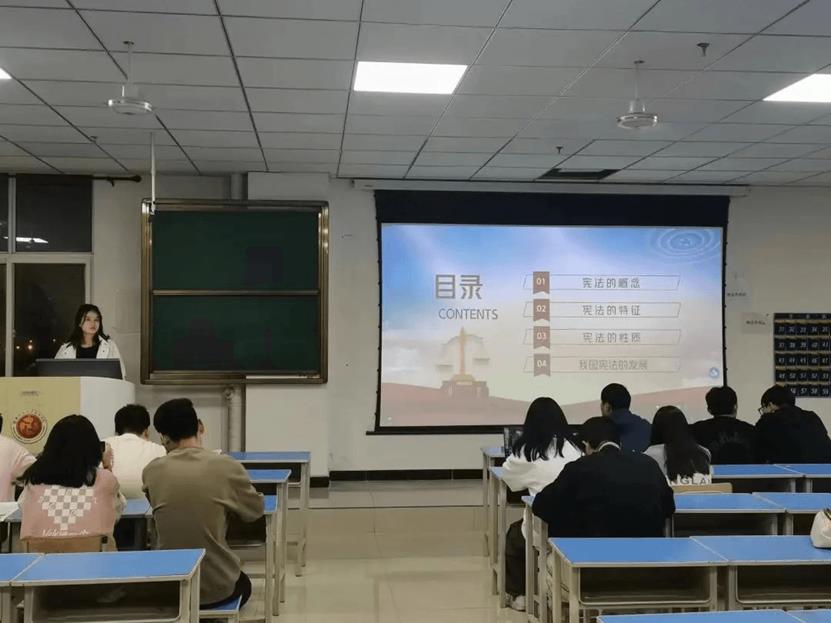主题班会上,各班班长首先对宪法的重要性和大学生知行宪法的意义等内容进行了详实地介绍和讲解,引导同学们在生活学习中厚植知法懂法守法的观念。并且积极呼吁同学们自觉学习宪法,维护宪法,争做新时代宪法的践行者。