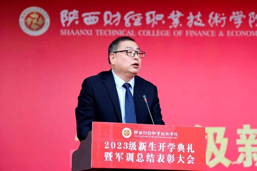 9月27日下午,我校隆重举行了2023级新生开学典礼暨军训总结表彰大会。党委书记张志华,院长程书强,党委副书记、纪委书记殷兴光,副院长张秦龙、王勇,党委委员、党委组织部部长穆天楠及秦都区武装部部长黄金刚出席会议。相关职能部门负责人、各二级学院院长、党总支书记,教师代表,优秀校友,全体辅导员班主任及2023级新生参加。会议由副院长雷旭主持。