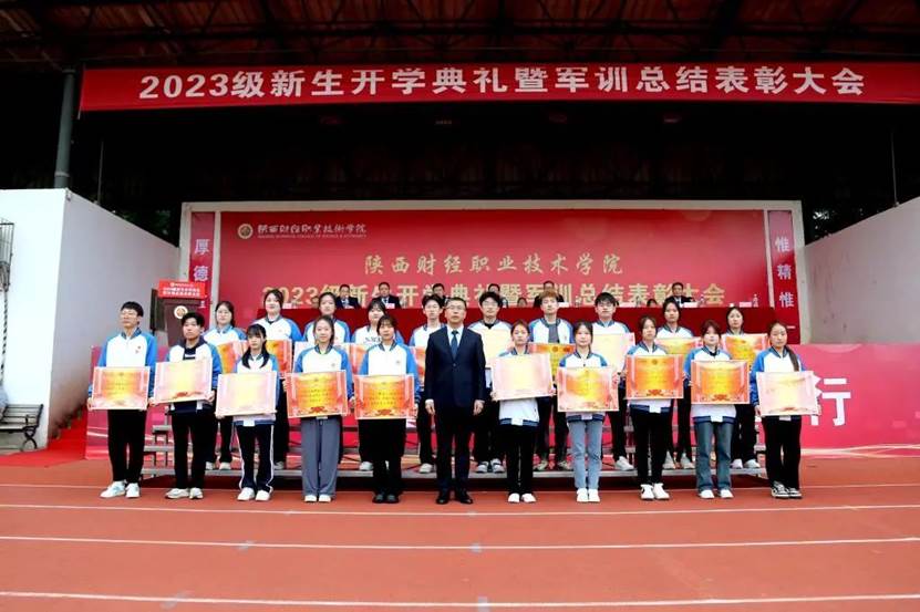 大会表彰了2023级新生军事训练先进集体及先进个人,黄金刚为获先进集体连队、优秀教官代表颁发了奖牌和荣誉证书。