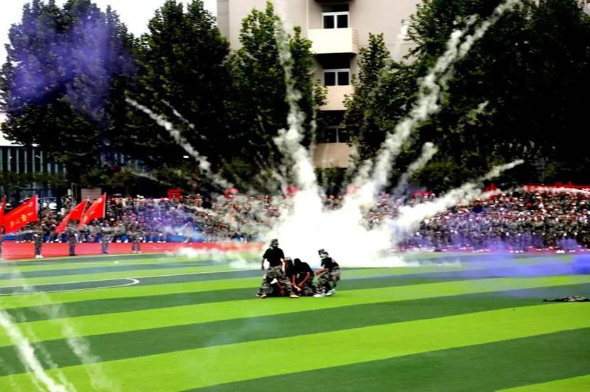 大会在雄壮的国歌声中拉开帷幕,首先进行了军训成果汇报演出,2023级军训团进行了分列式、女子队列、旗术+男子擒敌拳、花样队形等军训科目展示,还增添了“返校学生教官向母校光荣报到”特别节目。各军训方阵以高昂的士气、严整的军容、挺拔的军姿、嘹亮的口号、整齐的步伐依次经过主席台,他们英姿飒爽,尽显青春风采,赢得了在场领导和师生的阵阵掌声。在队列式、旗术、擒敌拳、战术演练及花样队形等科目展示中,同学们训练有素、果敢勇毅、激扬青春、气势如虹,展现了陕财学子昂扬向上的精神风貌,彰显了2023级新同学拼搏奋斗的精神状态和激情活力的青春风采。