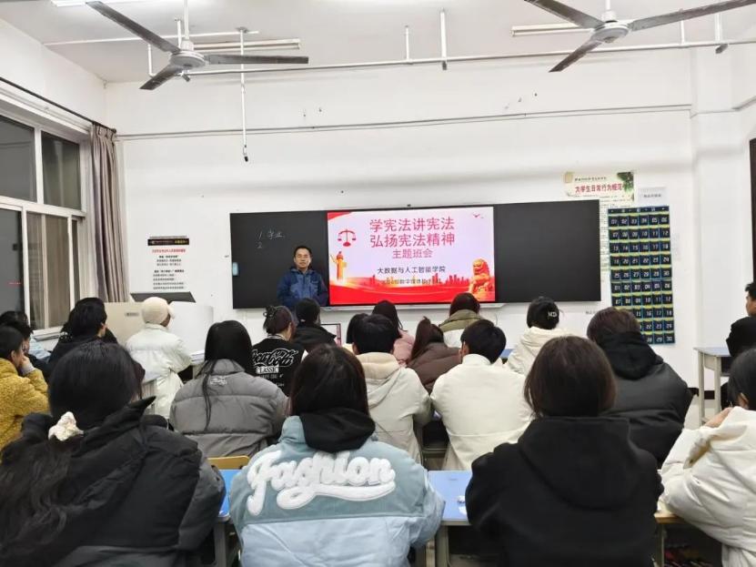 为进一步普及法律知识、弘扬法治精神,营造学法、守法和用法的浓厚氛围。12月2日和12月3日大数据与人工智能学院分别开展以“弘扬宪法精神,维护宪法权威”和“文明交通,携手共创”的主题班会,旨在增强学生的法律意识,使学生在生活中学宪法讲宪法维护宪法的权威,理解宪法与其他法律的关系,从而更好地崇法、学法、遵法和用法。
