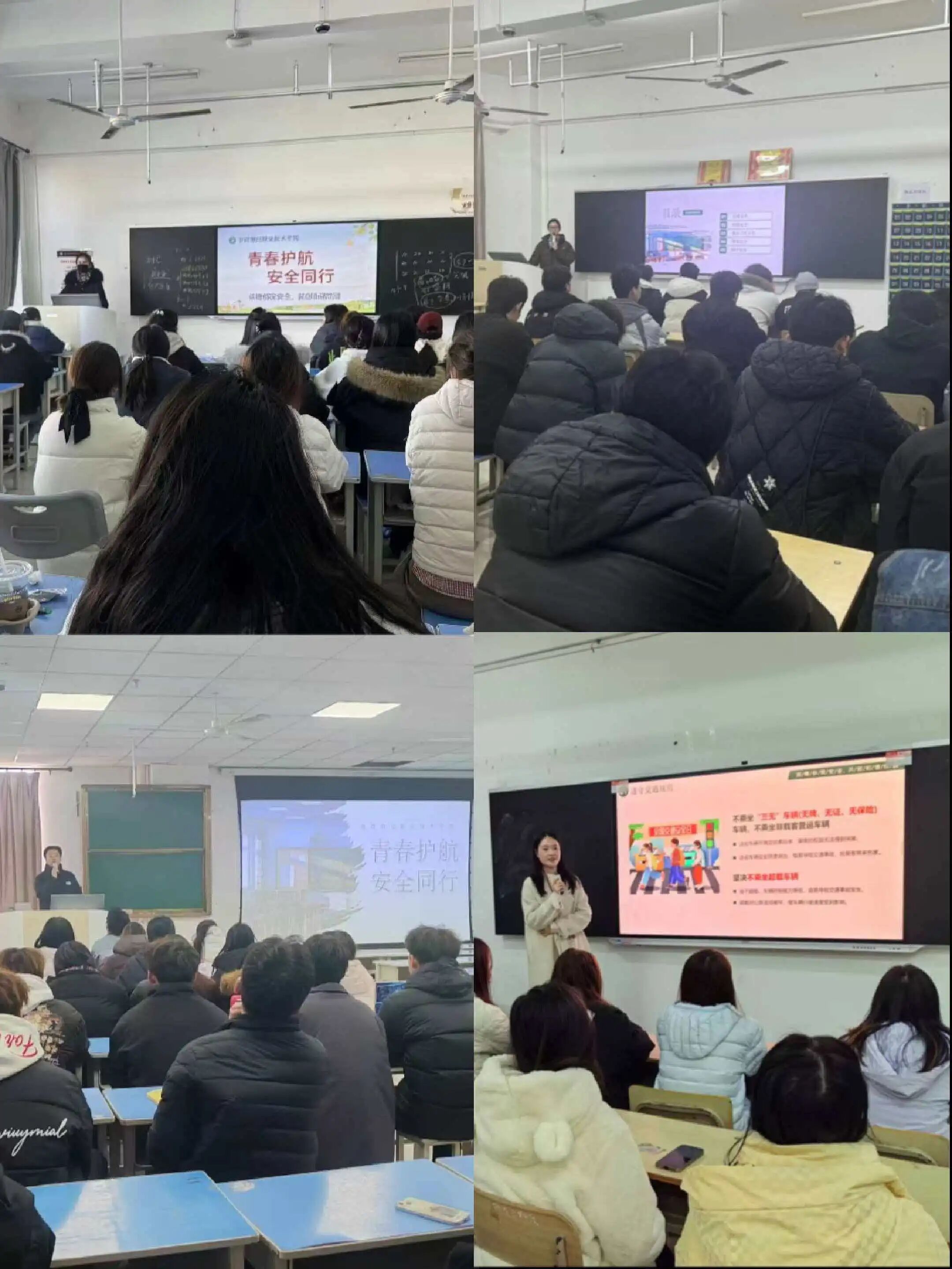 班会围绕“生命至上”核心理念,辅导员与班主任结合校园生活场景,开展了针对性的安全知识讲解。针对冬季流感高发和用电安全,老师们提醒同学注意防寒保暖与消防隐患;结合年末盗窃案件高发特点,重点讲解了在人员密集场所保管贵重物品的方法。
