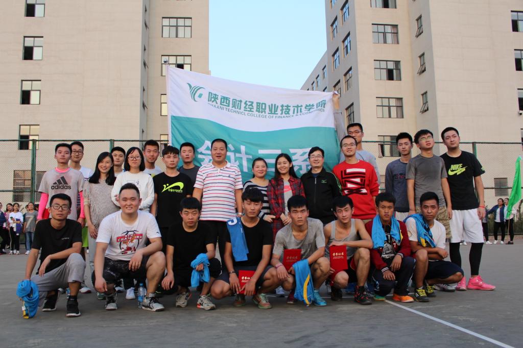陕西财经职业技术学院会计三系篮球友谊赛,于2016年10月20日下午4时在北院篮球场如期举行。篮球场上人声鼎沸,加油声、呐喊声不绝于耳。会计三系篮球友谊赛决赛正在双方队员激烈的对抗中进行着。14级的学长们在第一节利用高位对抗的优势,借助队友的掩护与挡拆,一次次突入内线,一次次精准投射,一直领先于15级学弟们。在接下来的三节中,15级球队积极应变,迅速调整,双方比分交替上升。悬念保留到了最后一刻,最终大三学长们惜败。