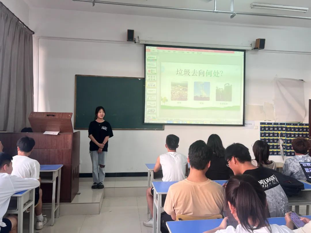 主题班会上,各班班长通过展示多种垃圾分类的知识与技巧,向同学们详细讲解了如何正确地进行垃圾分类。此外,各班班长还通过影片与图片向同学们介绍了近年来城市中垃圾处理所产生的环境问题,引导同学们积极参与到生态文明建设中来。