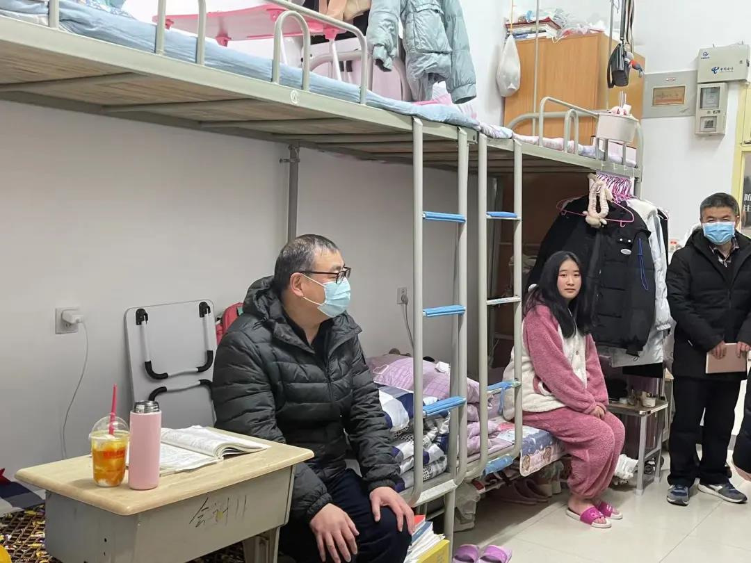 程院长与同学们亲切交流,了解了大家的思想动态和学习生活情况,进行了一番温暖的鼓励。教育同学们要加强与老师、家长的沟通交流,保持积极向上的精神状态和理性思考的科学认识,深刻理解当前特殊时期学校所采取的管理措施及规定。叮嘱同学们要增强责任意识,重视自我防护,合理安排学习生活,坚定战胜困难的信念信心,在防疫抗疫斗争中磨炼意志、淬炼思想,配合学校共同做好疫情防控工作,为确保校园安全、师生健康,支持地方早日恢复正常秩序贡献力量。祝福同学们在新的一年快乐成长、学业进步,为取得更大成绩、实现自我梦想奠定扎实基础。