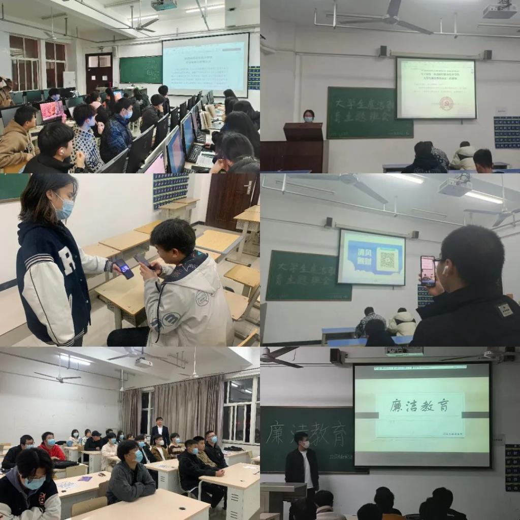 为深入贯彻党的二十大关于加强廉洁文化建设、落实全面从严治党政治责任的精神,全面提高我校大学生廉洁自律意识,引导学生明大德、守公德、严私德,“扣好人生第一粒扣子”。根据《陕西财经职业技术学院大学生廉洁教育办法》部署要求,大数据与人工智能学院于11月23日晚自习在组织开展“廉洁教育”主题班会,学习《陕西财经职业技术学院大学生廉洁教育办法》,引导学生关注“清廉陕财”公众号。