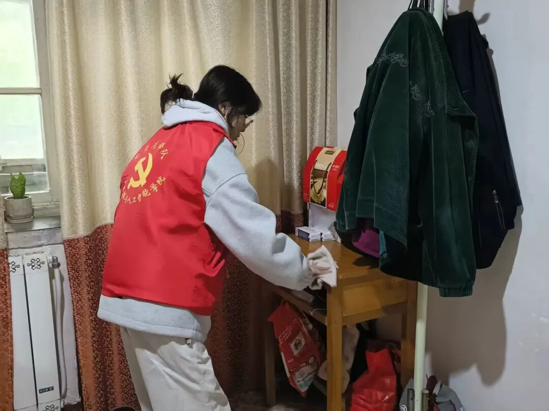 随后,志愿者携带扫帚、抹布、清洁剂等工具,在社区工作人员的引导下分组入户,迅速投入到卫生清扫工作中。清扫结束,志愿者主动陪老人聊天。交流过程中,不仅细心询问老人的日常起居、身体状况以及生活上的需求,还耐心解答老人提出的关于智能手机使用、日常安全等方面的问题。对于老人提出的需求,志愿者与社区人员尽力协助解决,切实为老人排忧解难。