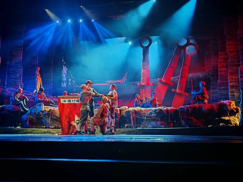第三站我们来到了金延安红色教育研学基地,观看了舞台剧《红秀延安延安》,看着舞台上的表演者,我仿佛也进入到了那段革命岁月,家破人亡的演绎让人不禁心中一颤,军民同心的丰收盛况与炮弹的爆炸声形成鲜明对比,给我们内心带来无比震撼与动容。