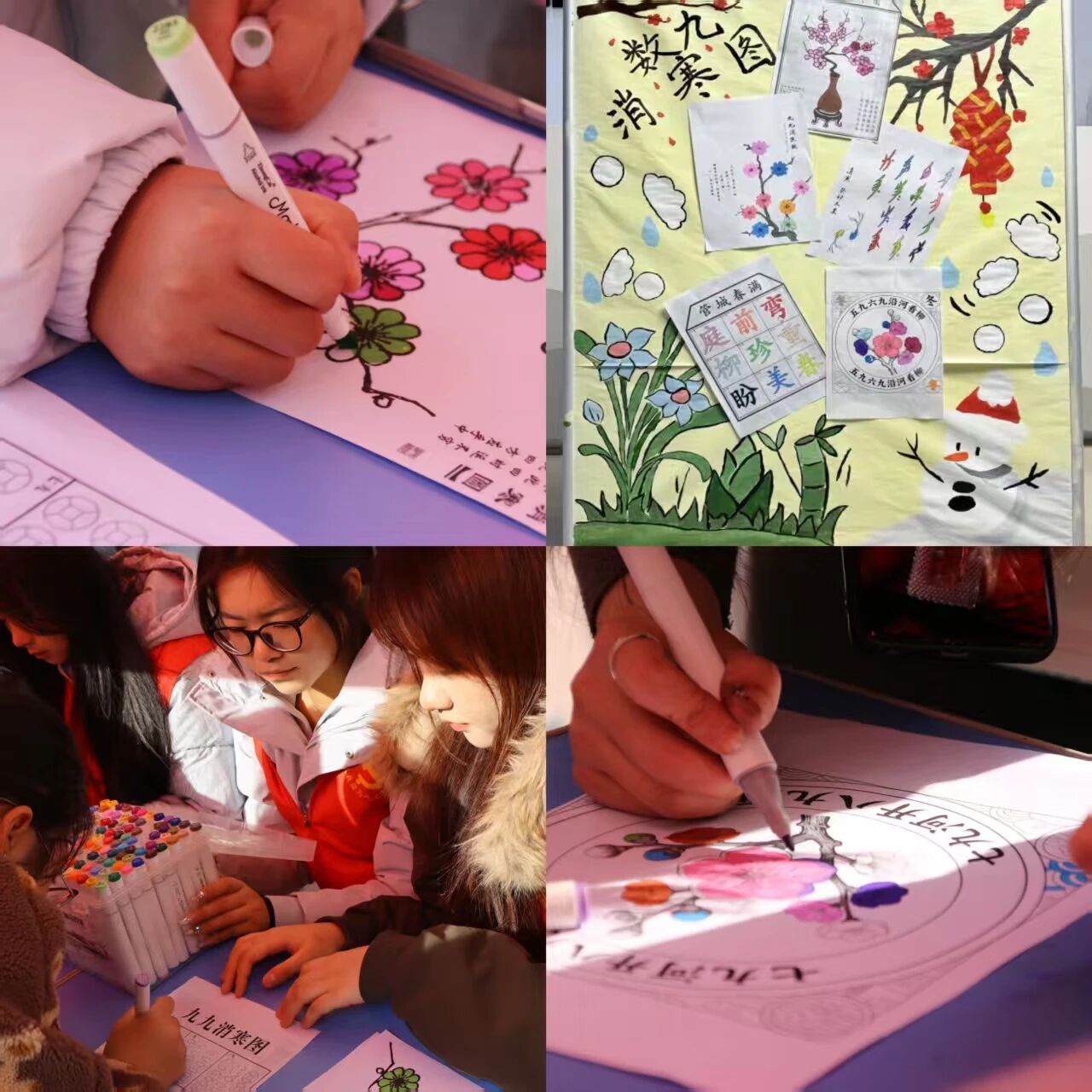 “数九消寒”活动吸引师生驻足,笔尖之下共盼春暖。每日勾勒一瓣梅香,静候冬尽春归;学子亲手绘制“九九消寒图”,沉浸式体悟古人以“数九”纪寒的生活智慧,在笔墨晕染中潜移默化涵养观察自然、体悟时序更迭的人文素养。