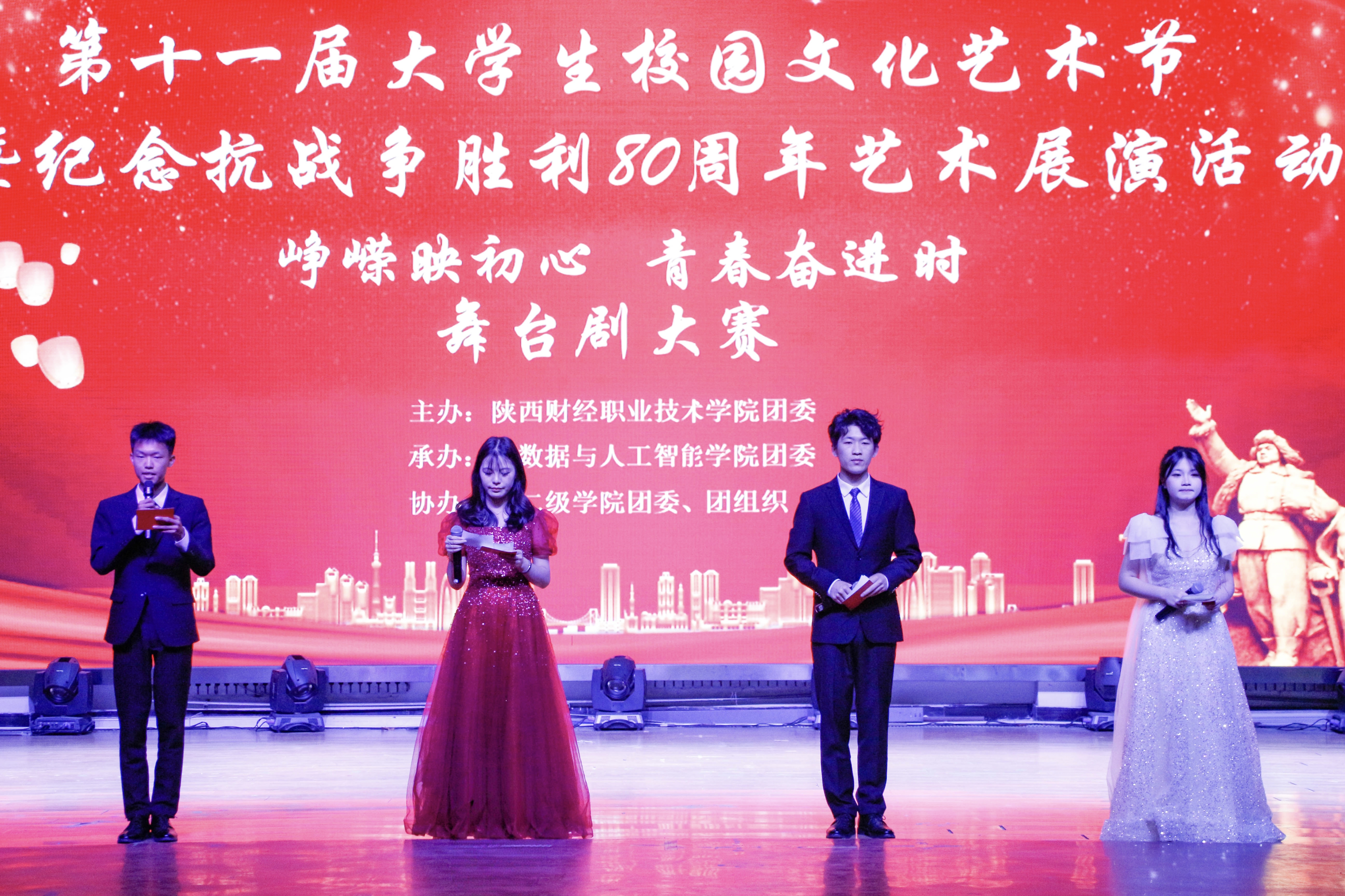 为纪念中国人民抗日战争胜利 80 周年,引领青年学子从历史中汲取奋进力量,5月29日,由校团委主办,大数据与人工智能学院团委承办,各二级学院团委、团组织协办的第十一届大学生校园文化艺术节之“峥嵘映初心,青春奋进时”舞台剧大赛决赛在学校大礼堂沉浸式演绎。学生处处长乔晶策、副处长袁永彦、各二级学院党总支(党支部)书记、副书记、团委、团组织负责人莅临现场,校团委办公室主任连静、马克思主义学院办公室主任王小翠、新媒体中心副主任高明雪、统战科副科长曹敏姿、学生资助管理中心副主任魏子哲担任评委,与1000余名师生共同穿越历史烽烟,见证新时代青年以舞台为媒的初心告白与青春誓言。