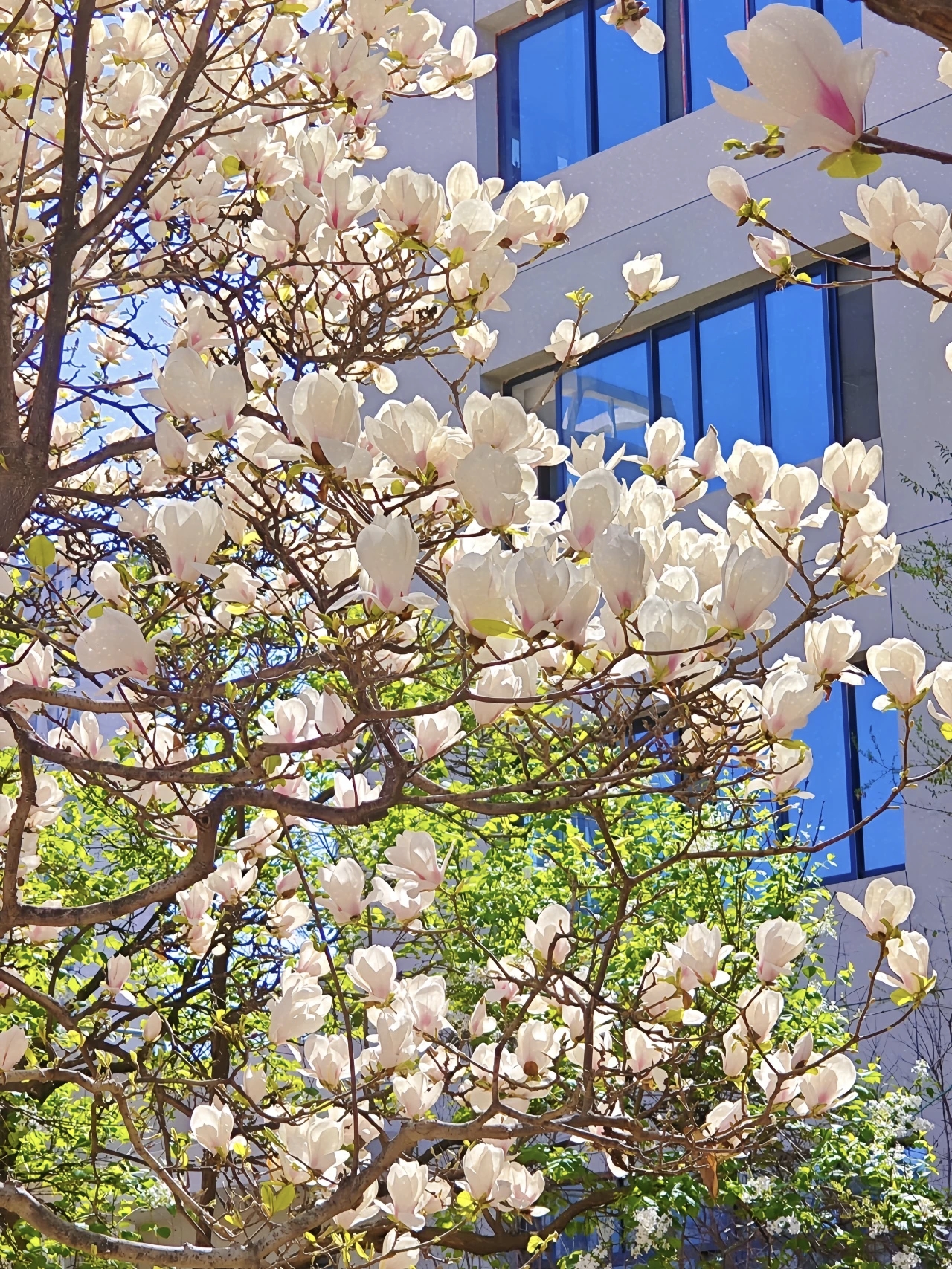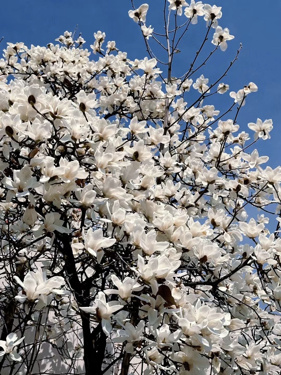 作品简介:“桃红柳绿间,玉兰携希望绽放。