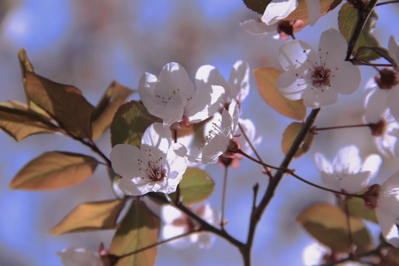 作品简介:“绿叶白花衬蓝天,尽展自然之美。