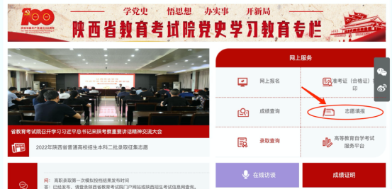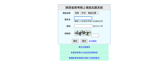 (1)考生凭网上报名时所用报名号(14位)或准考证号(10位)及密码登录网上填报志愿系统,网址为陕西省教育考试院(www.sneea.cn)或陕西省招生考试信息网(www.sneac.com)。
