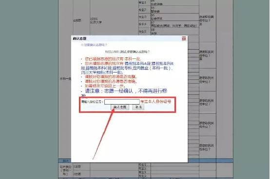 (5)在弹出页中填写身份证号,点击“确认志愿”;